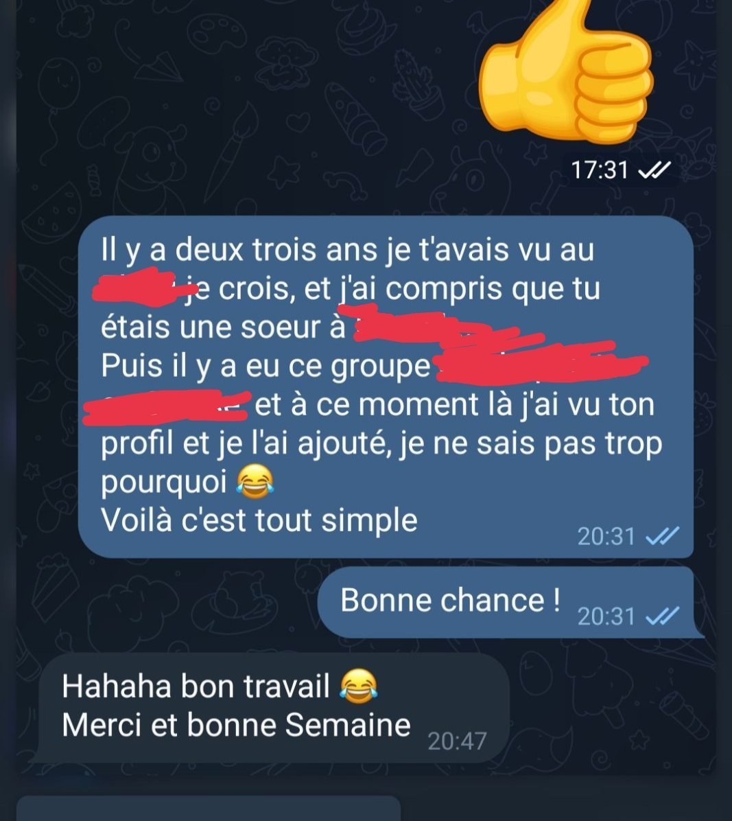 Le 18 septembre 2022 à 22:31:13 :Elle ta dit bonne semaine pour que tu la lâche, tu n'as vraiment pas compris ?