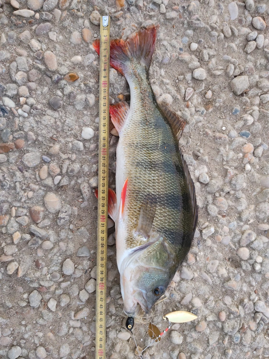 Des perches que j'ai fait de 45cm et un peu moins. J'utilise un spinnerbait avec un gros leurre souple en trailer et je longe les quais de mon village (bord de Saône) vue qu'il y'a des recoins en dessous j'arrive à coffrer de belles pièces.