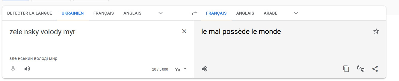 si tu met zelensky volody myr, ça fait "Zelenskyi possède la paix"
