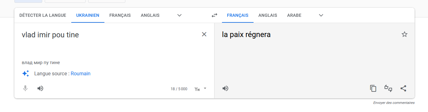 et il traduit vladimir en possède la paix et volodymyr en possède le monde