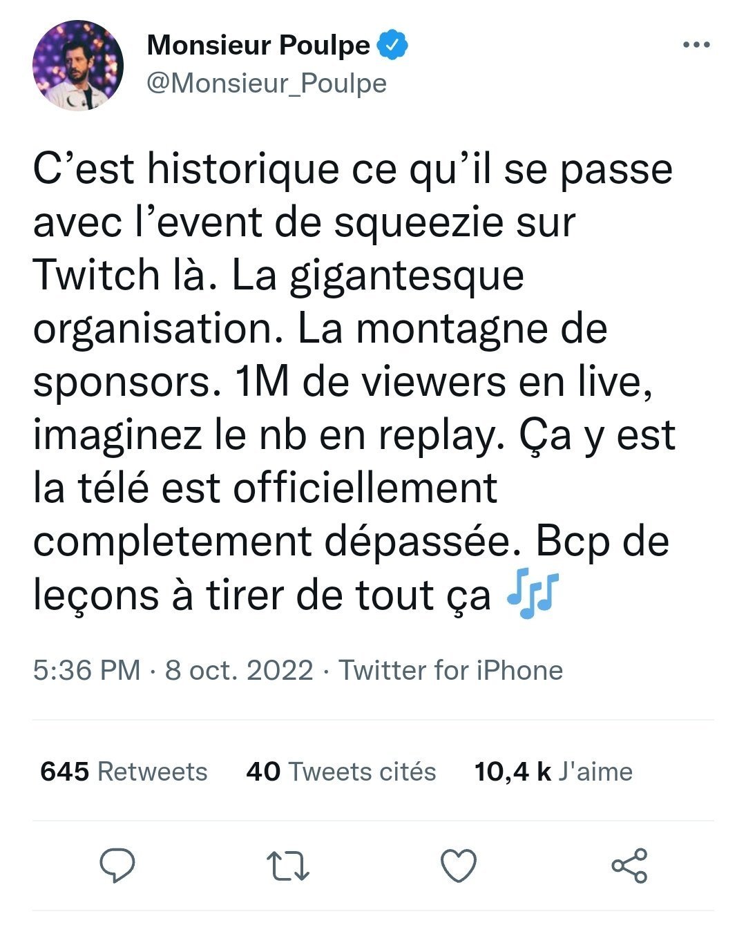 Nn parceque il regarde un truc qui ressemble à 200% a une émission télé et il pense que la télé est dépassé en fait