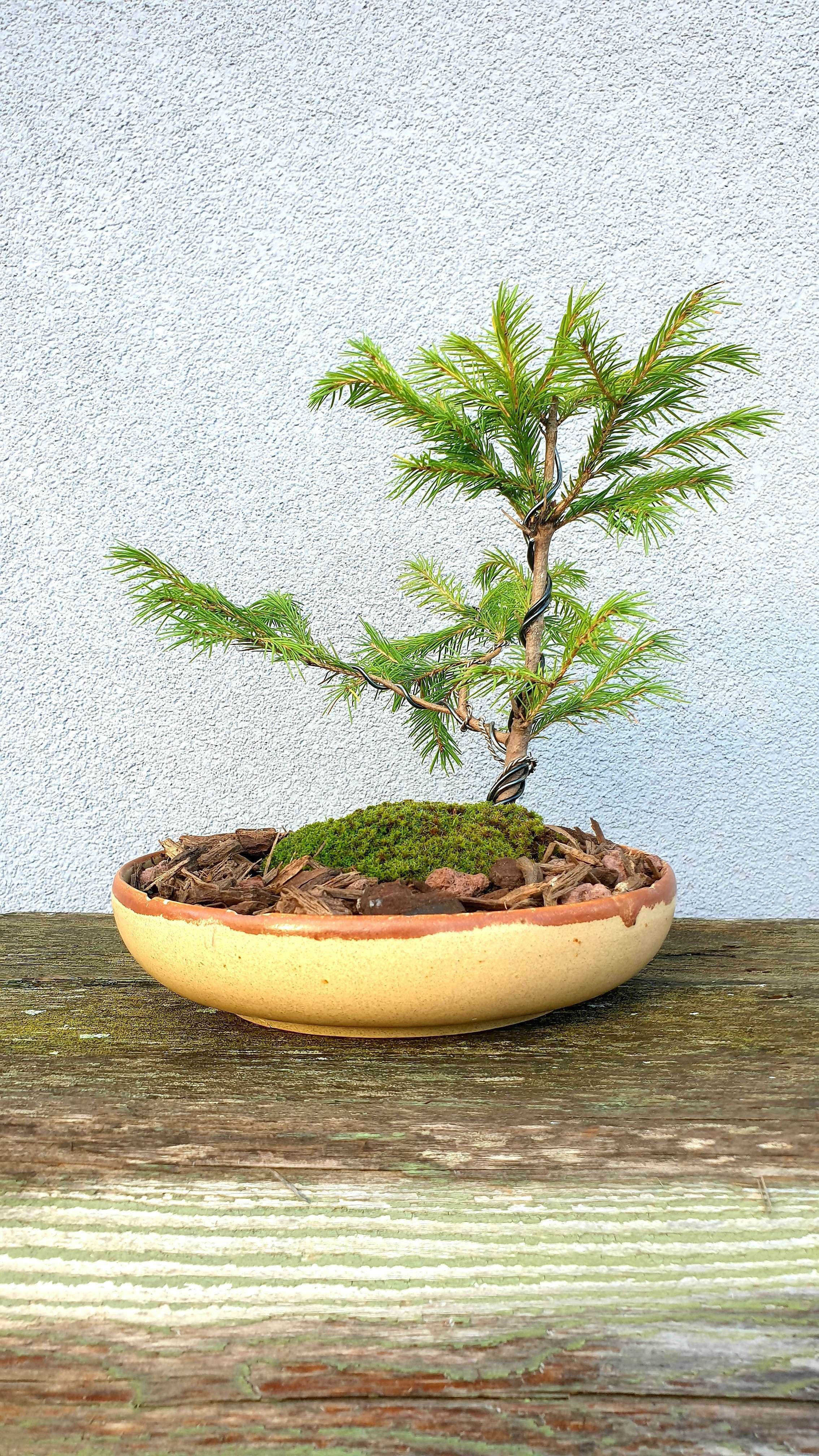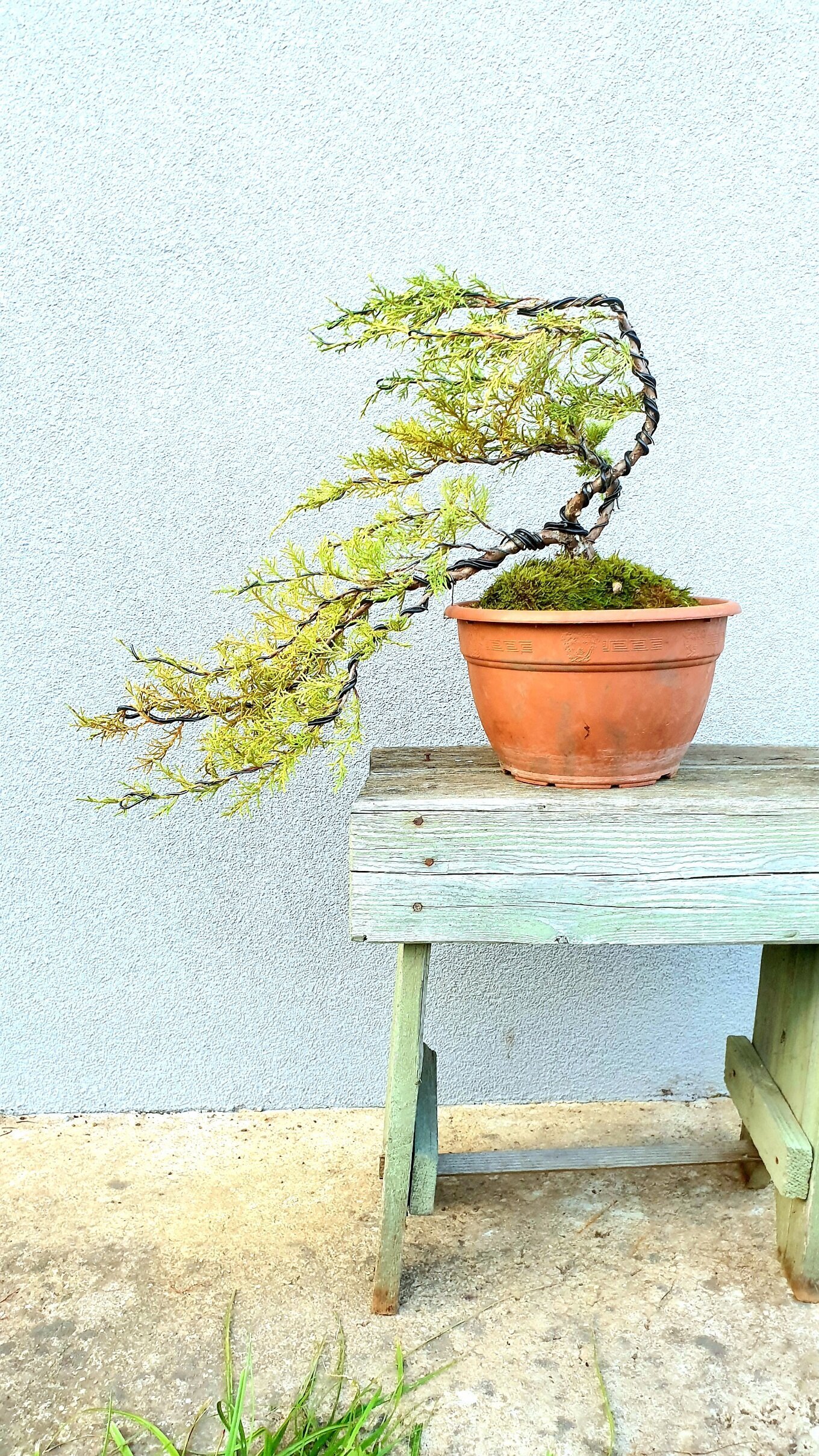 Ici: Juniperus Pfitzeriana Aurea.Franchement c'est ultra propre, un seul truc que j'aurais corrigé à ta place c'est la branche tout en haut qui est trop droite