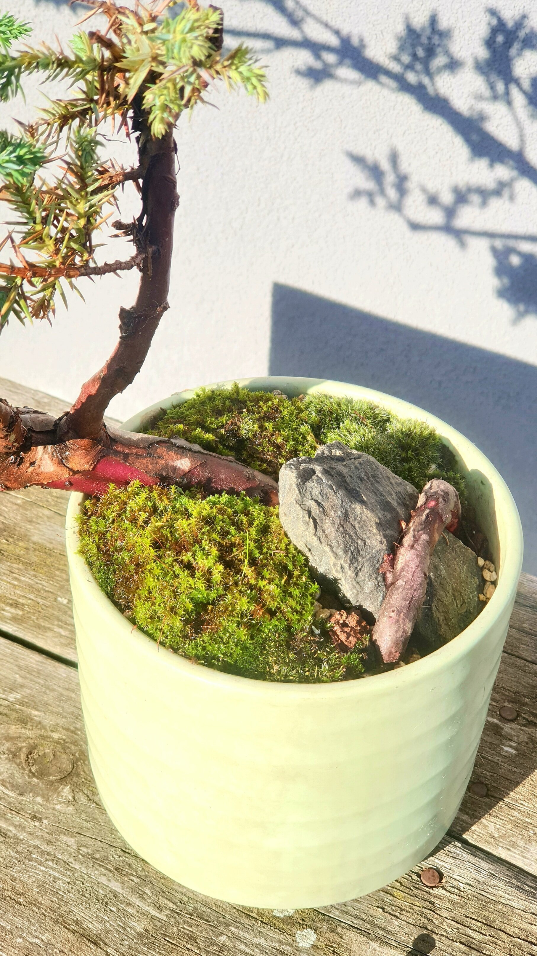 Fukinagashi (l'arbre pris dans la tempête)Voilà ce qu'on peut faire avec un genévrier payé 15€ en pépinière.