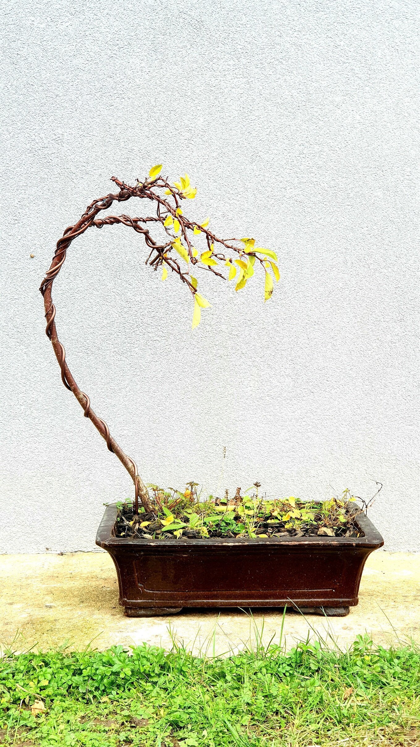 Je vais le laisser raciner du chevelu et au printemps je vais continuer la ligature en cascade, accentuer les plateaux, et construire un jin sur la partie arrière.