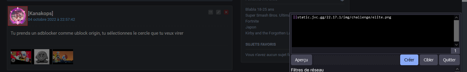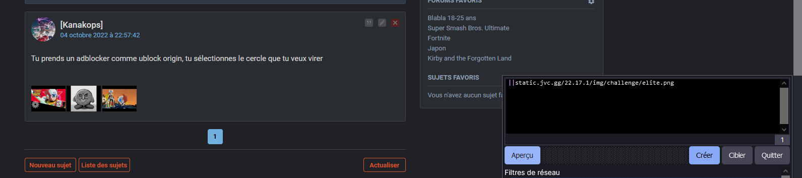Tu prends un adblocker comme ublock origin, tu sélectionnes le cercle que tu veux virer