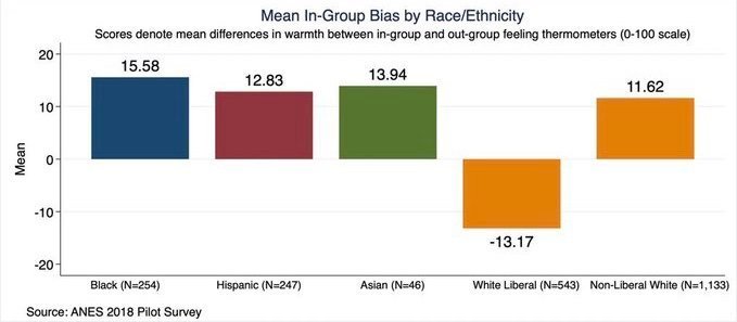 Les Blancs de gauche ont une opinion plus positive envers ceux qui ne sont pas de leur groupe qu'envers leur propre groupe ethnique.