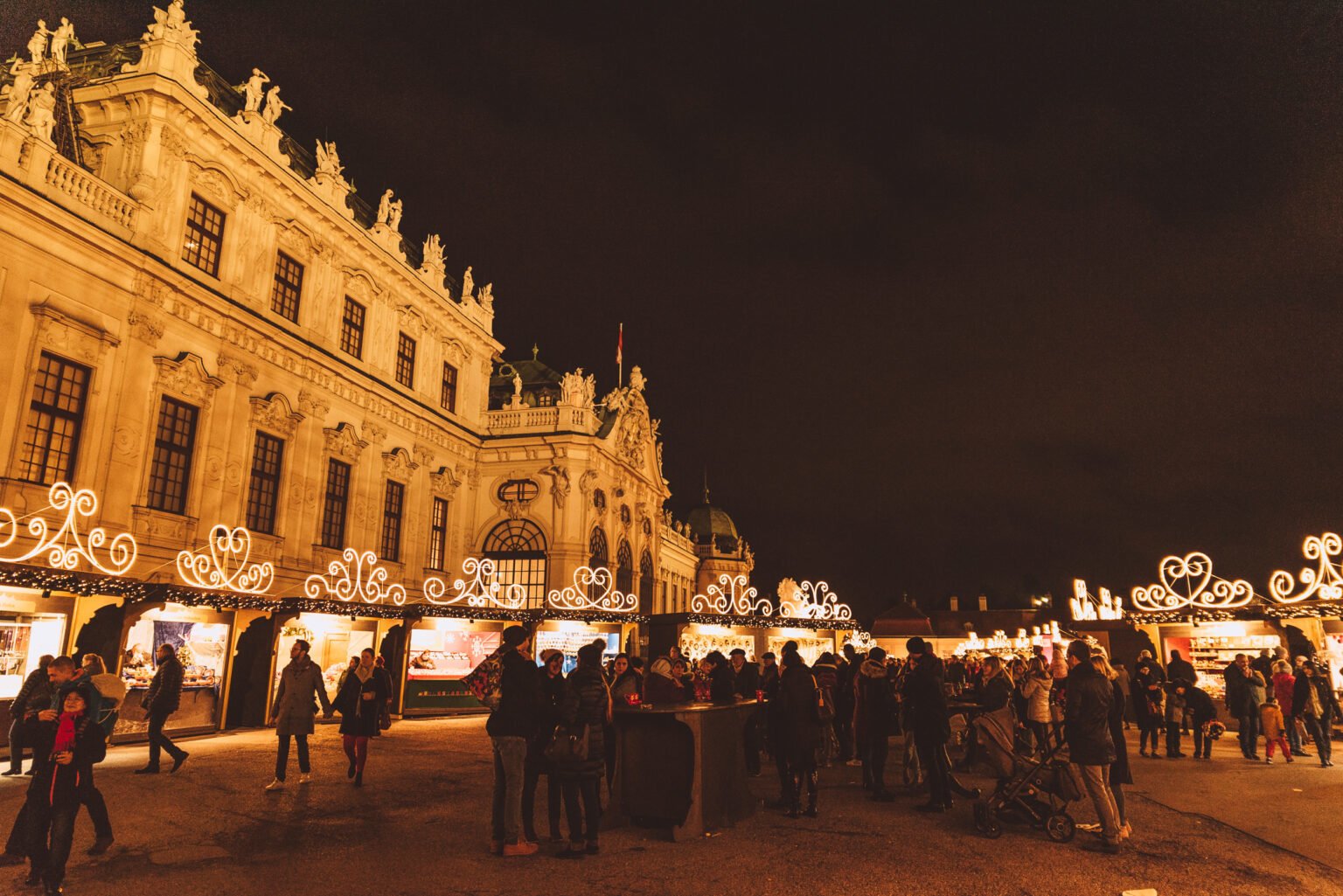 S'il y a un marché de Noël à Vienne qui se démarque particulièrement, c'est bien celui du Belvédère. Pour l'occasion, le palais baroque s'illumine de guirlandes et se pare d'arbres décorés, le marché lui-même est un peu plus petit que les autres, mais l'on s'y rend pour son atmosphère romantique, pour retrouver des amis autour d'un verre ou pour faire plaisir à sa copine. L'on peut également profiter du musée d'art situé dans le palais, mais c'est dehors et à la nuit tombée que l'endroit révèle toute l'emprise de sa magie, quand le marché se reflète dans le bassin du château.