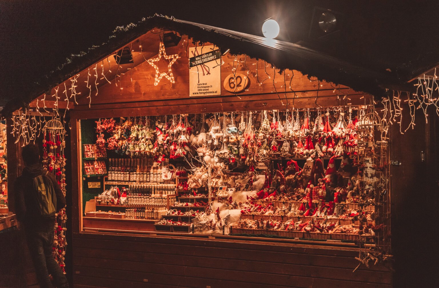 Considéré comme le marché de Noël le plus célèbre d'Autriche et sûrement l'un des plus beaux d'Europe, le Rathausplatz Christkindlmarkt est plus un village de Noël qu'un simple marché. Vous pouvez prendre une tasse de vin chaud pendant que vous flânez parmi les nombreux étals aux senteurs d'hiver, et trouverez autour du marché de nombreuses autres activités de Noël, notamment une grande patinoire, une grande roue, des ateliers d'artisanat pour enfants (à l'intérieur de l'hôtel de ville) et l'arbre aux cœurs, où les amoureux viennent se faire photographier.