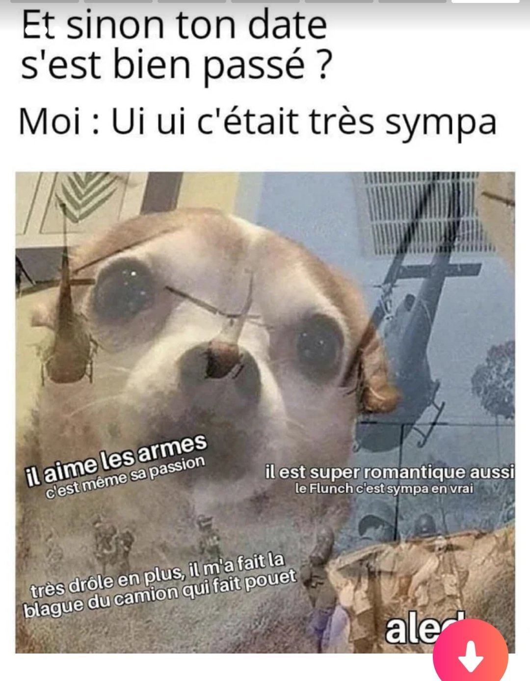 Enfin si t'arrives à un date sans savoir c'est quoi les passions du mec, c'est que t'as parlé de quoi avant de le rencontrer ..?![]()