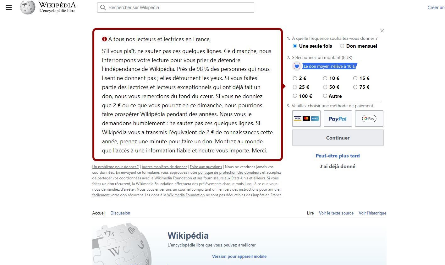 Le 09 octobre 2022 à 22:50:50 PierreMoulinaux a écrit :"presque 98% des lecteurs ne donnent pas"c'est le principe d'une encyclopédie gratuite