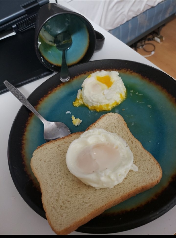 J'ai manger 3 oeufs2 tranche de pains4 baconUn morceau de gâteauUn beignetUn yogourtUne sorte de pizza pochetteUn morceau de fromageJ'ai bu aussi du laitEt bu de la racinette