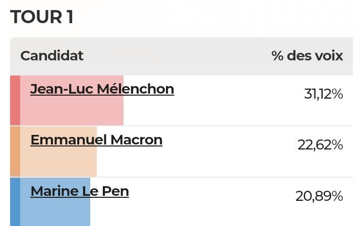 À Marseille, jean Luc Mélenchon est arrivé premier et marine lepen 3eme: