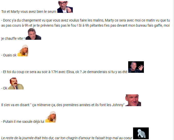 Chapitre 12 : This is not a Love Song Partie 4 (Marty out, Pharell out, Angele out) https://www.jeuxvideo.com/forums/message/1216288850