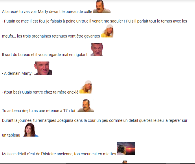Chapitre 2 : Jour de rentrée (Humiliation ou pas ? ) https://www.jeuxvideo.com/forums/message/1213180986