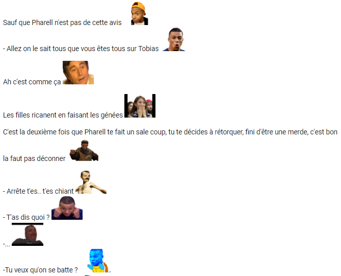 C'est la deuxième fois que Pharell te fait un sale coup, tu te décides à rétorquer, fini d'être une merde, c'est bon la faut pas déconner