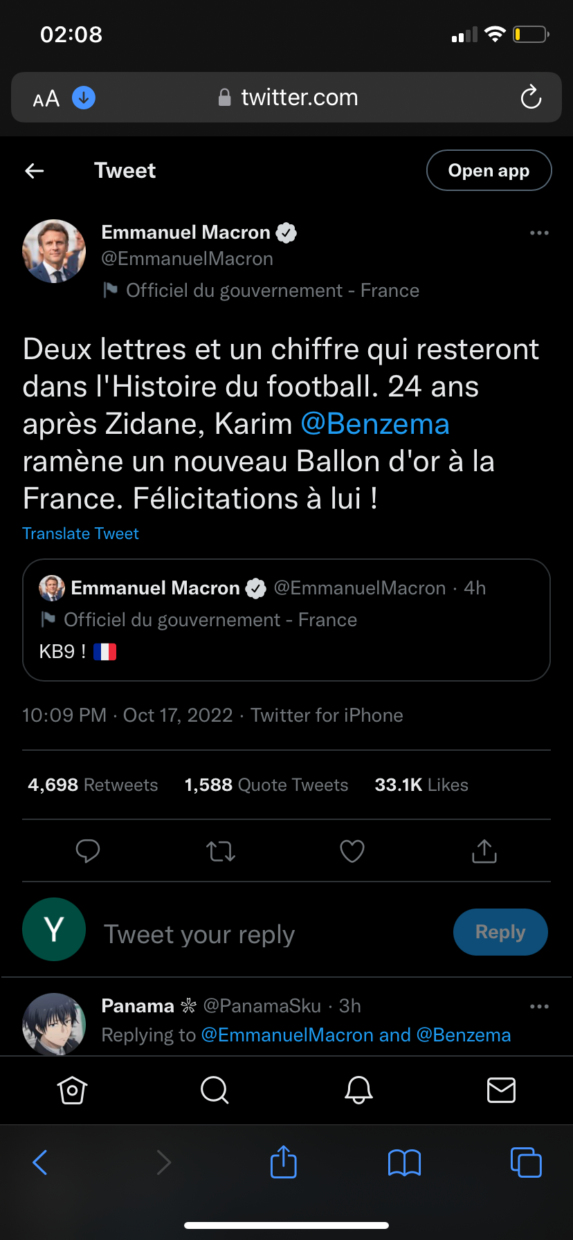 Le 18 octobre 2022 à 21:21:12 :