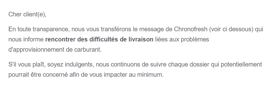 Problème de parisien j'ai du gasoil dans ma voiture je vais faire mes coursesEt ton magasin il se ravitaille par la magie du Saint Esprit ?