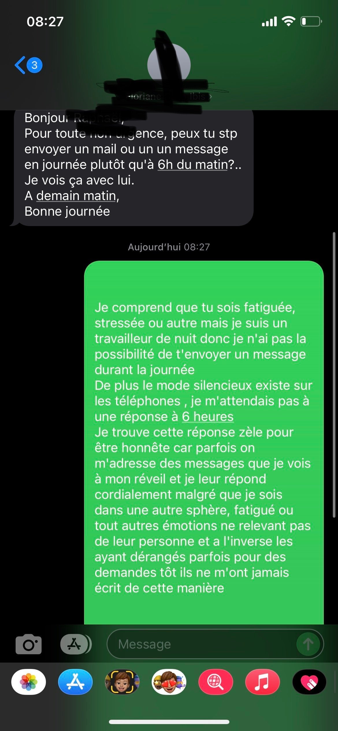 Navre pour l’orthographe je sortais de mon shift et je vais bientôt dormir la