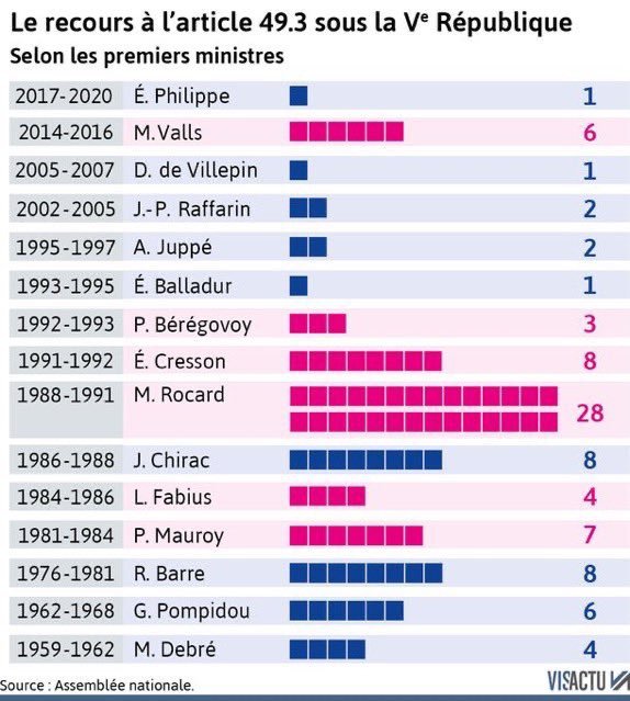 Le seul intérêt de CE 49.3 est l'allongement du temps de travail alors qu'à ce jour 20% des plus pauvres en France sont déjà morts avant d'arriver à la retraite. Avec ce passage de 62 à 64 ou 65, ça touchera plus de gens encore. Passer sa vie à travailler et mourir au travail, est le plan accepté par tous nos représentants qui feignent une chamaillerie pour ne pas voter la motion de censure, seule capable de ne pas allonger cette durée. Une mascarade.Putain this