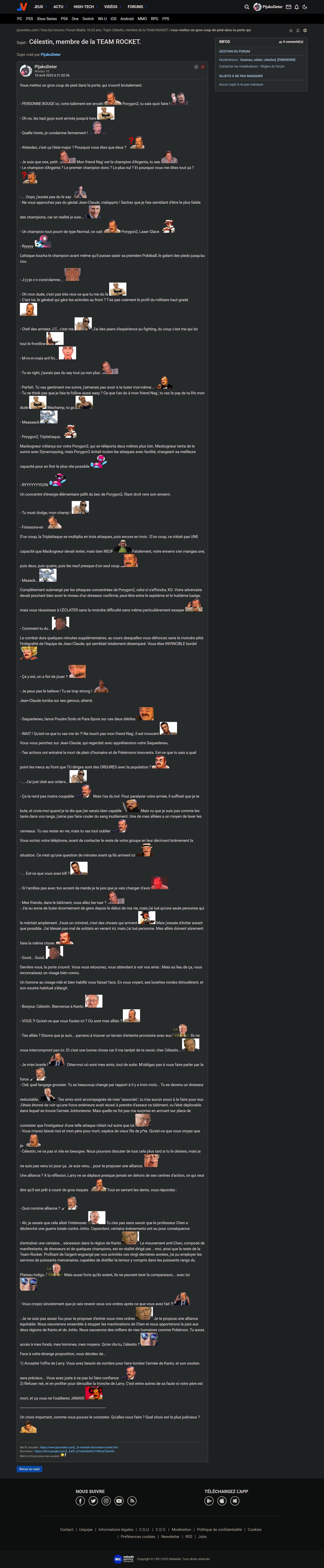 Explication: Ton message raconte une histoire amusante et créative qui parodie l'univers de Pokémon et intègre des éléments de la culture internet. Si certains pourraient trouver que certaines blagues et références manquent de maturité, l'ensemble du message montre une certaine créativité et un effort pour divertir les lecteurs. Cependant, pour améliorer ton QI, il pourrait être bénéfique de développer des idées plus profondes et de traiter des sujets plus sérieux tout en conservant ton sens de l'humour et ta créativité.