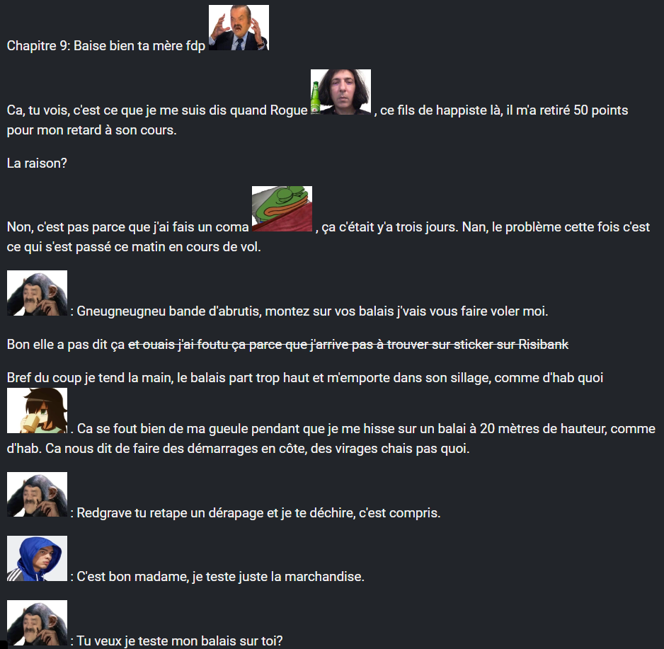 Prochain chapitre je racole avec le film, faut bien suivre le scénar au bout d'un moment au lieu d'écrire de la merde h24. Avec un peu de chance la partie 2 se fait pas dégager