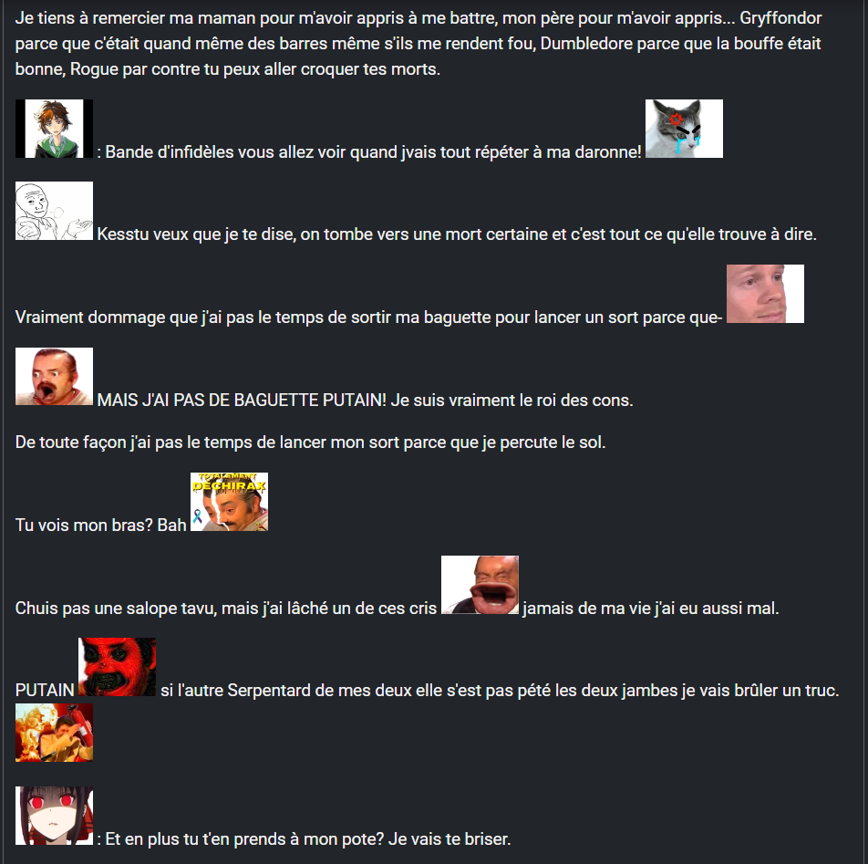 : Frérot ferme ta gueule avec ton record t'as vu combien on a perdu?! Nan frère, fin de l'année Gryffondor dépose le bilan, on est ruinés.