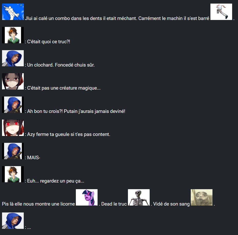 quand elle m'a dit ça. Askip c'était déjà un miracle que j'ai survécu à la chute.