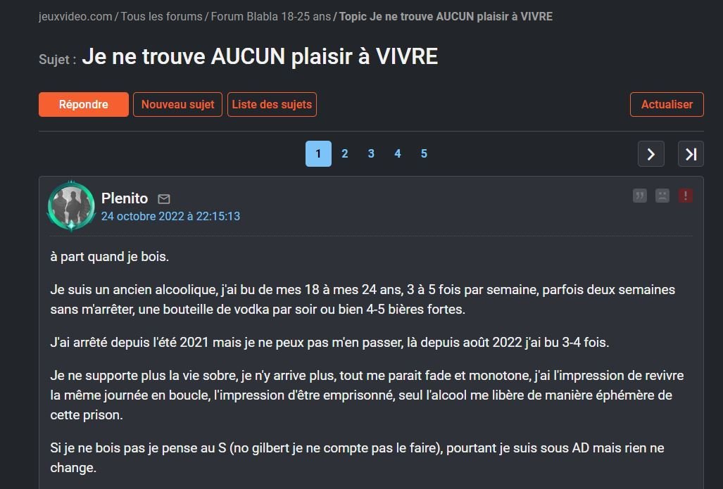 Tes tendu jeremy , ta pas bu ta dose dalcool ou , cest les anti depresseur ?