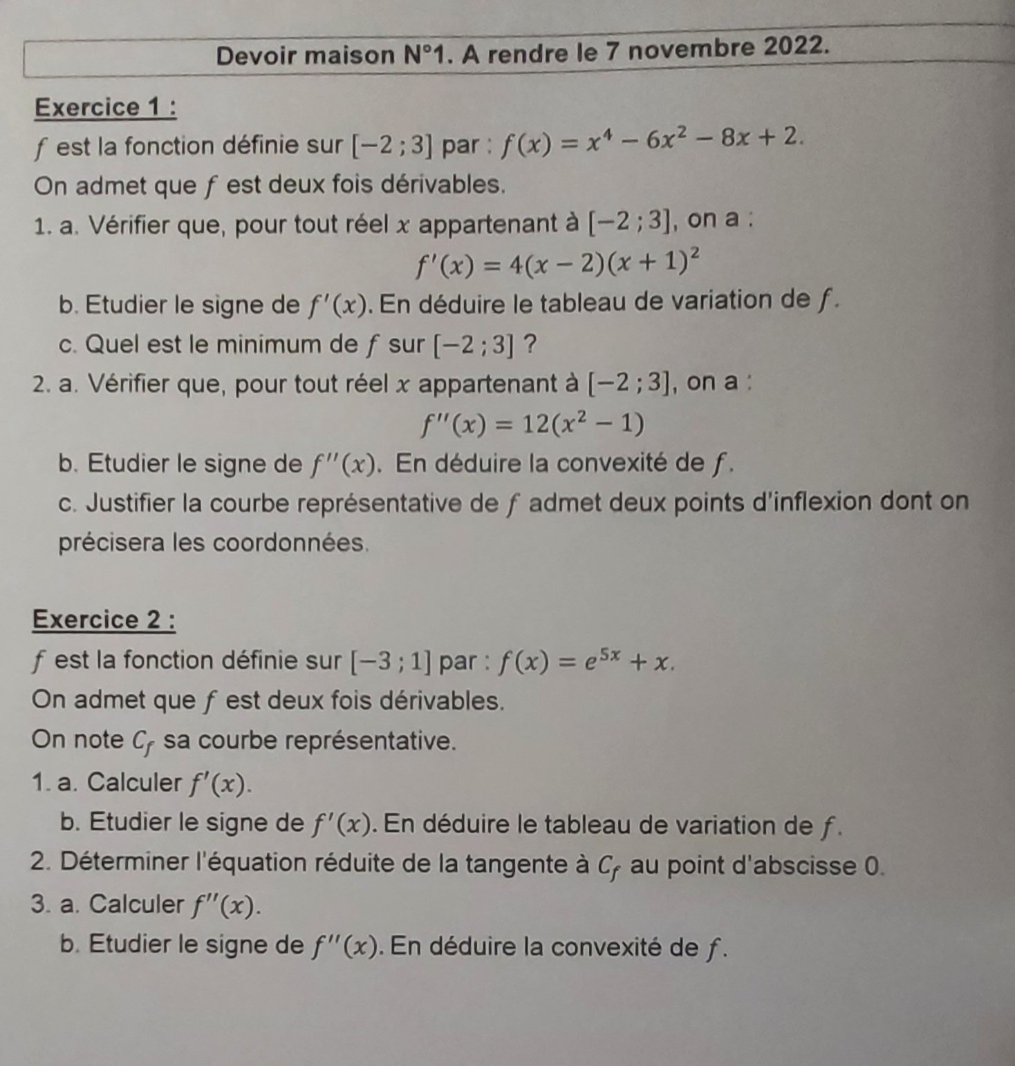 mon f ' (x) = 4x^3 - 12x - 8 et mais ça doit faire 4 (x - 2)(x + 1)² il passe ou le 12 de mon expression ?