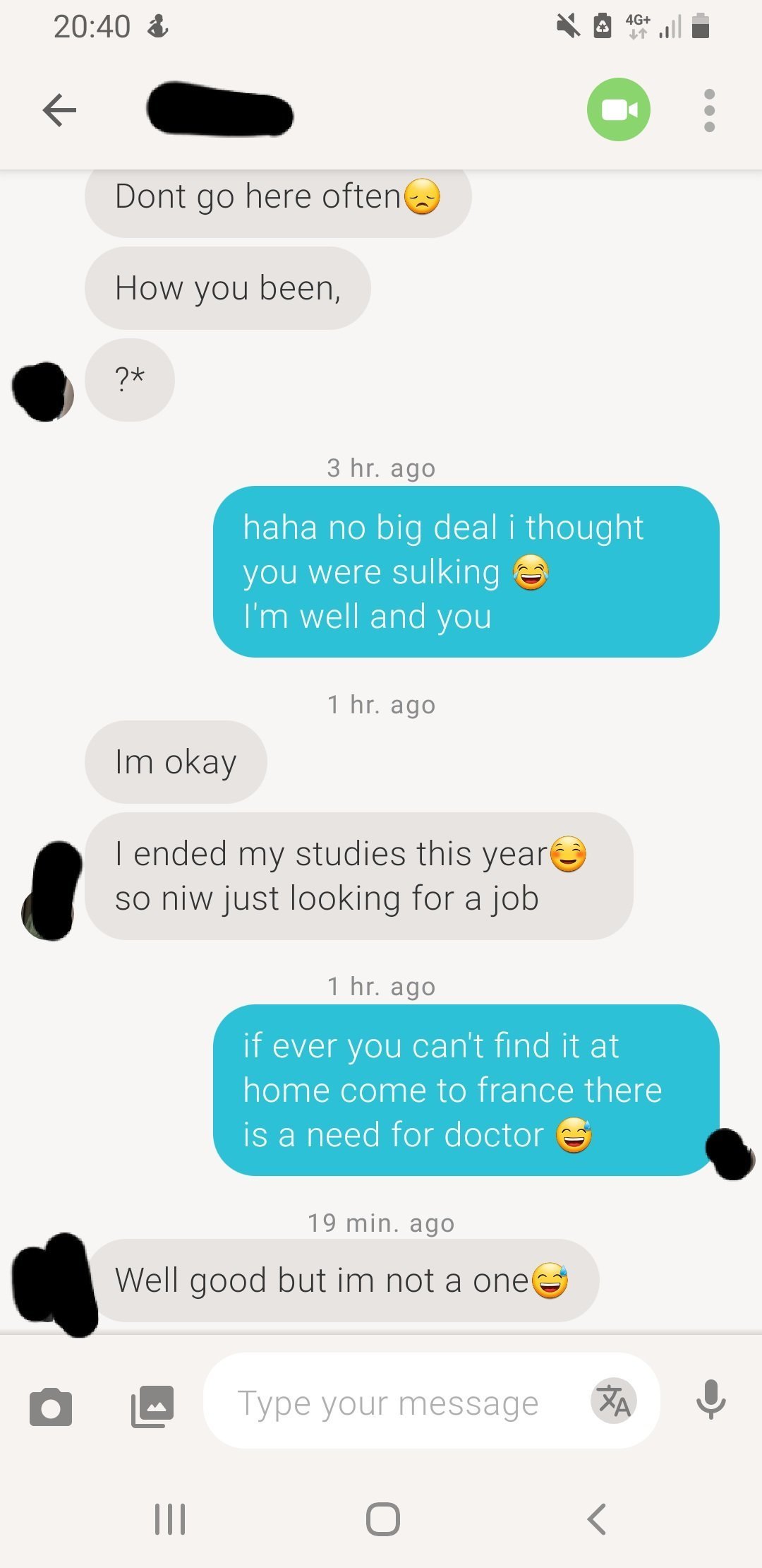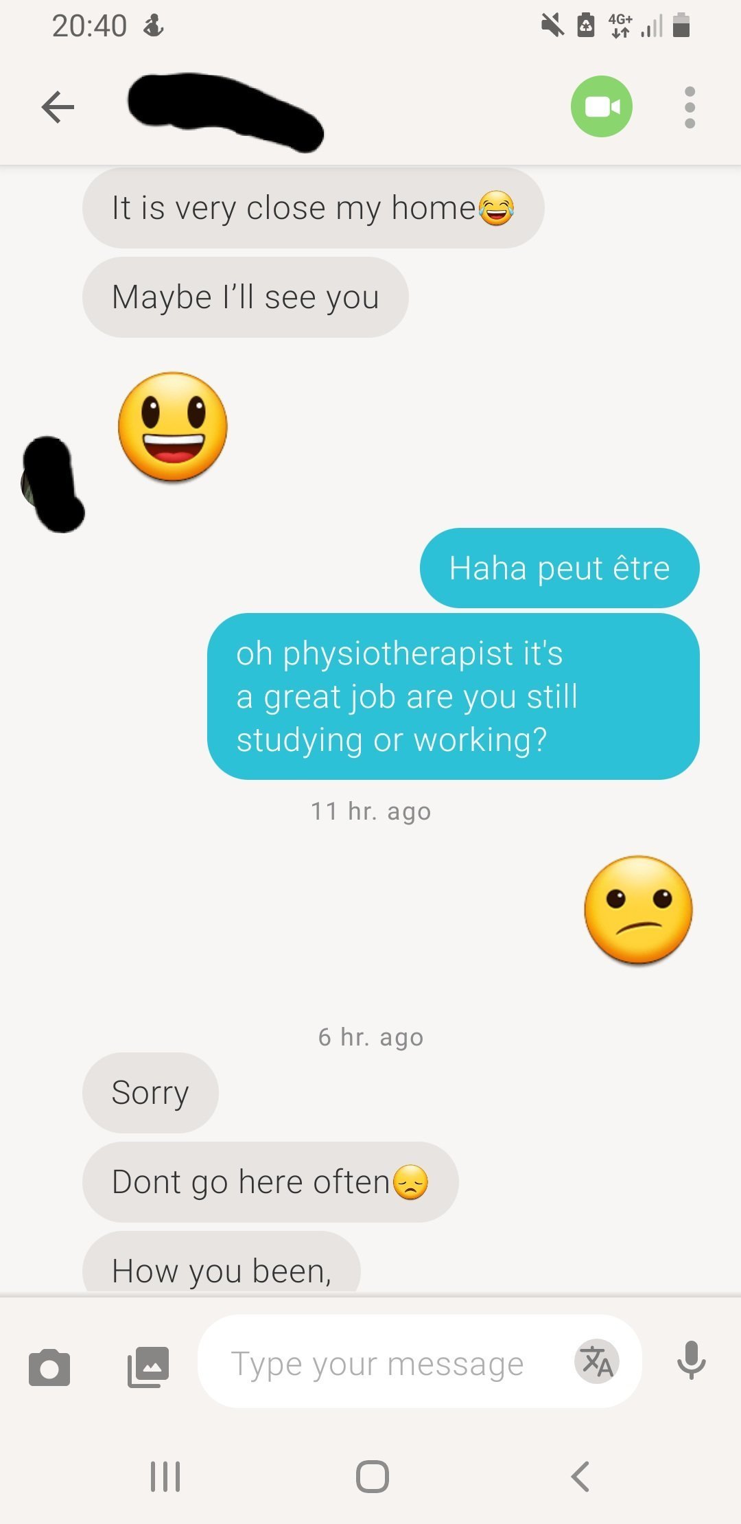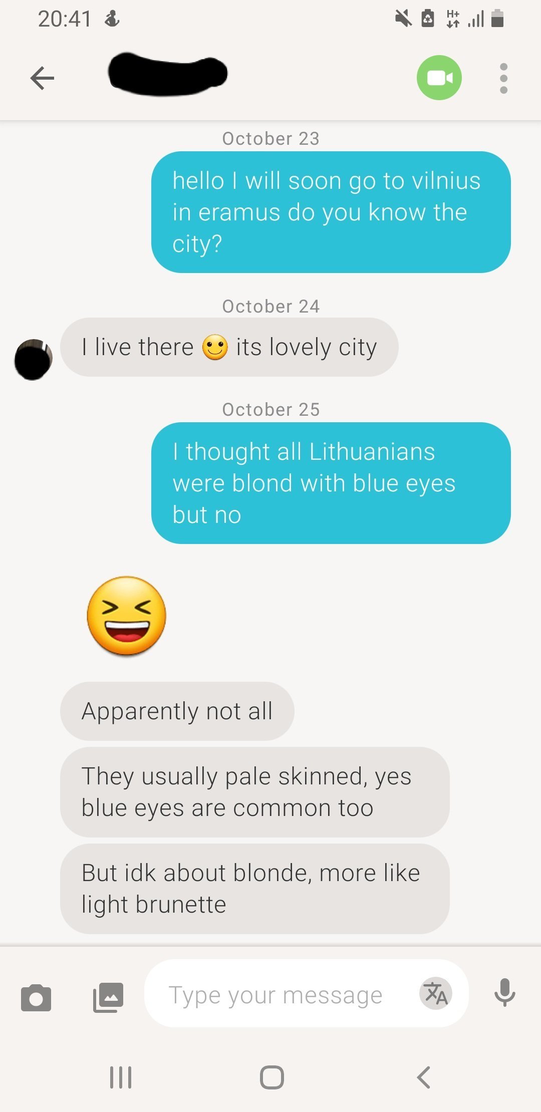 Je pars en Lituanie en eramus l'année prochaine du coup j'ai installé une appli pour parler à des lituaniens et je tombe sur elle solide 7/10 et j'apprends que mon école est tout près de là ou elle habite Je vous ai pas mis toute la conv juste des moments intéressants je crois qu'à la fin j'ai merdé aider moi