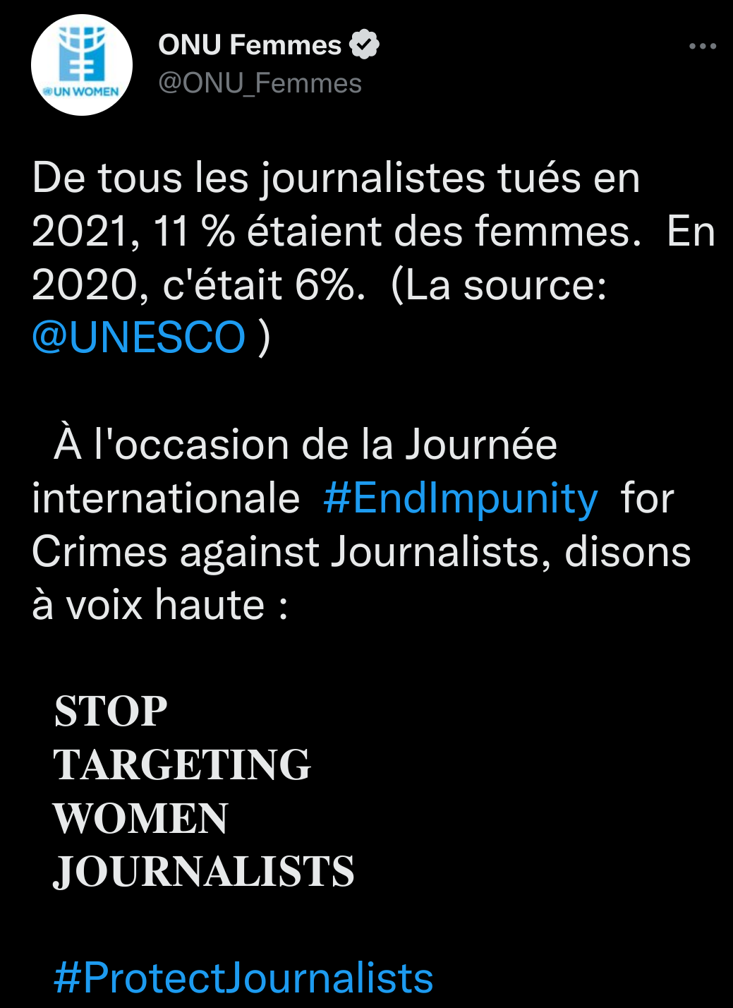 Bah si 1% des journalistes sont des femmes et que 11% des journalistes tués sont des femmes oui y'a un problème