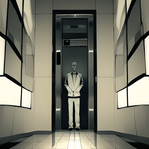 homme depressif dans un ascenseur noir et blanc horreur