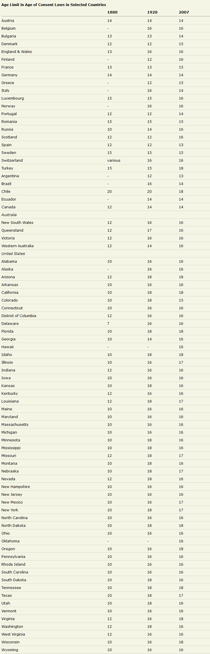 La majorité sexuelle en europe a cette époque la était de 11 ans