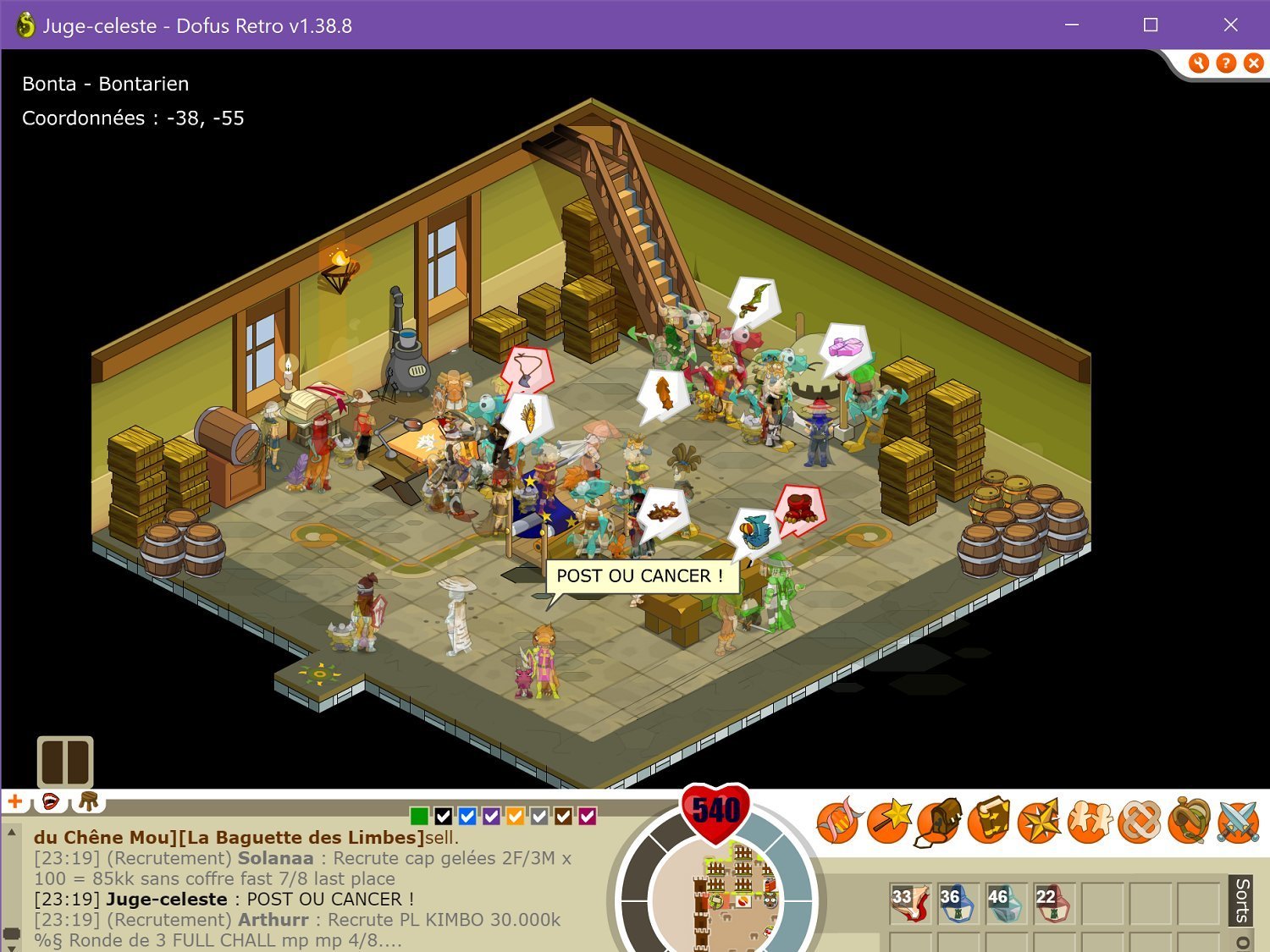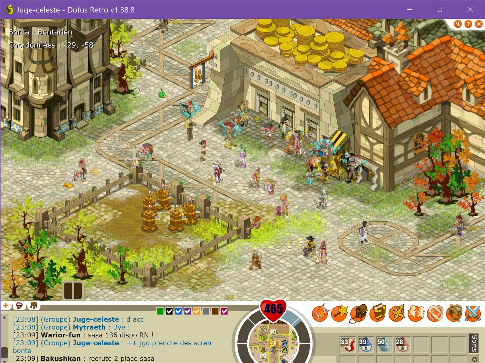 atelier cordomage (regardez bien) la banque de bonta le donjon rats noir pour etre lvl 100 en 3 jours l'aréne de bonta ou y'a masse portugais qui farment et moi qui arrive pas a avoir mon rn car y'a bouchon