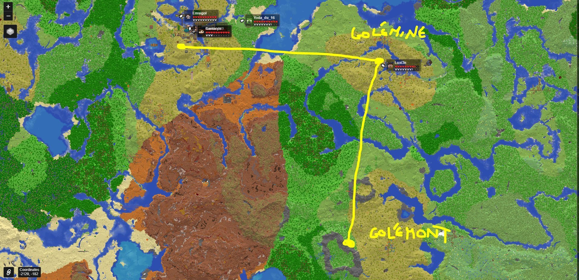 J'espère que ta ligne spawn - Golémine ne gênera pas mon tunnel. C'est en dessous du niveau de l'eau ton metro ? Parce-que ma ligne sera au niveau de l'eau en surface.