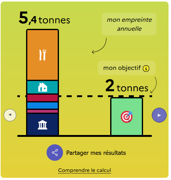 J'ai fait mon bilan carbone sur leur site de merde, 7 tonnes au lieu des 2 recommandées, c'est techniquement impossible leur trucPresque pareil, j'ai 5 tonnes