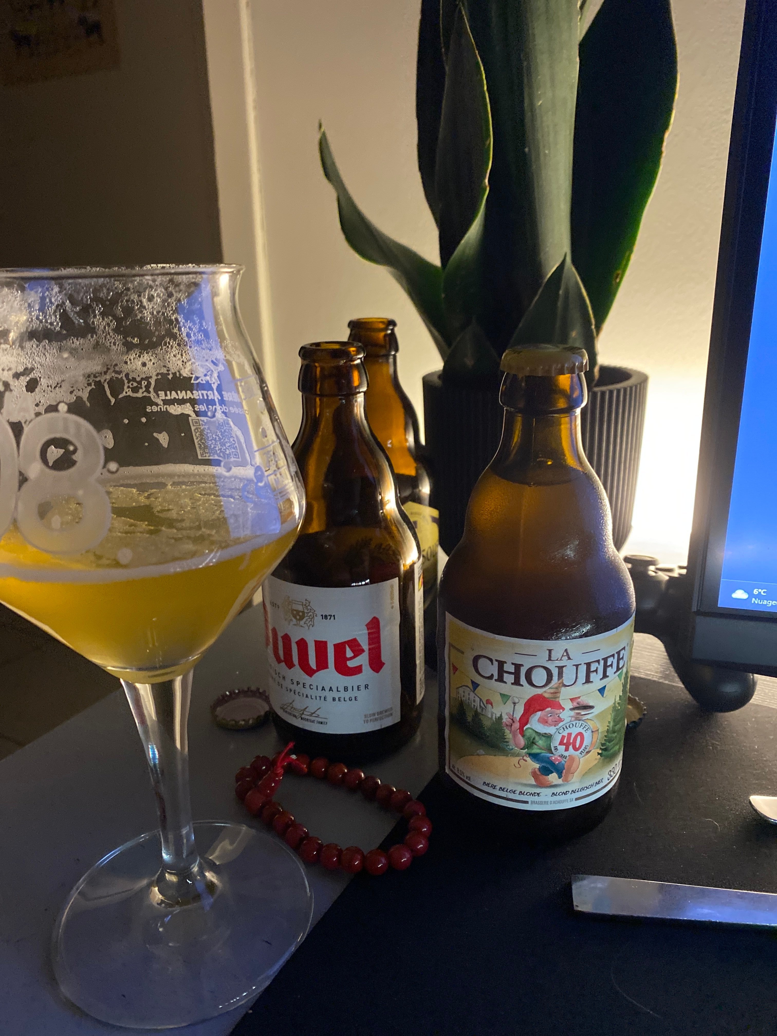 A la biere toujours mais j'alterne une petite brewdog planet en rentrant du taff puis un 1664 citron apres une lagunitas IPA (pas terrible) et la j'attaque une chouffe