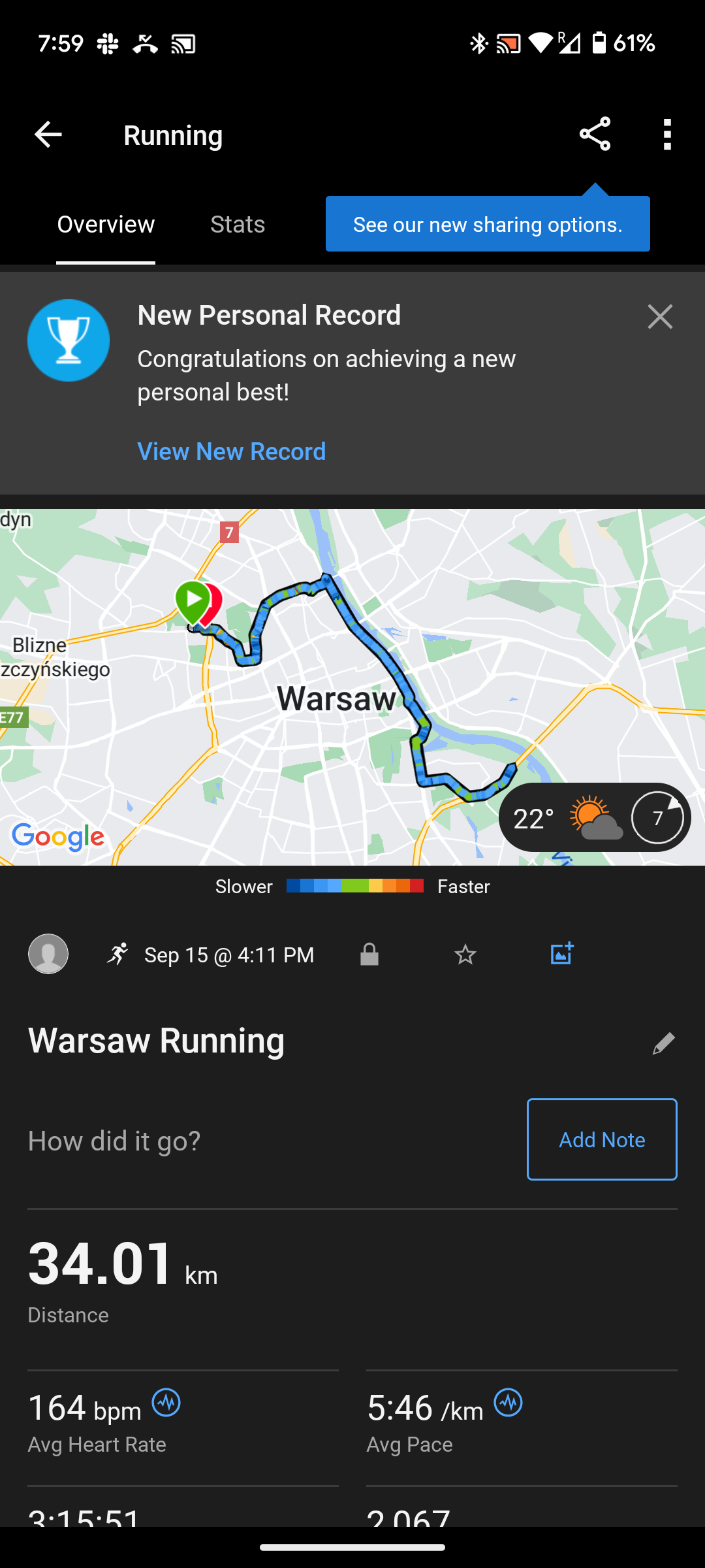 J'ai finalement poussé un peu plus et couru 34km en 3h15