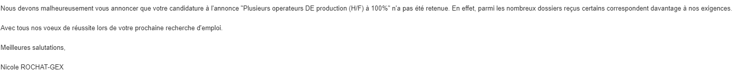 et ça c'est constamment, j'ai du envoyé 70cv pour de l'usine ou des techniciens de labo.. j'peux vous sortir tout les screen de refus ça rendrais 10 ans .....