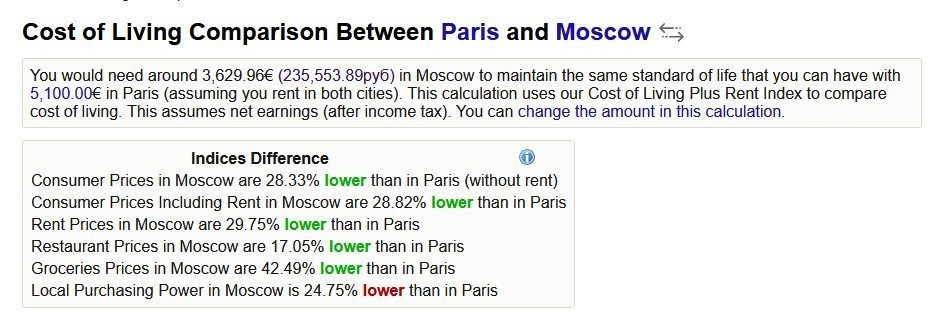 Oui mais la Russie coute moins chere que la France, donc en comparaison, tu serais plus riche.
