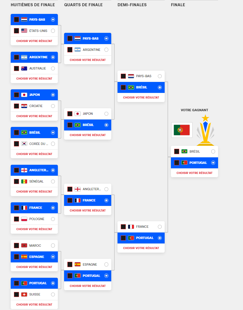 Voici les resultats de la phase finale de la coupe du monde.