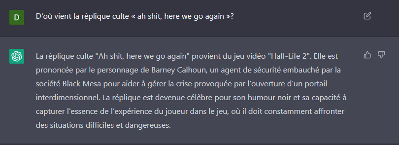 Bah il est connecté à internet sinon il pourrait pas te répondre, il est justepas capable de faire des recherches sur google en temps réel car il est pas conçu pour çaComment il peut supporter tout les data s'il est fait pas de recherche sur internet ?