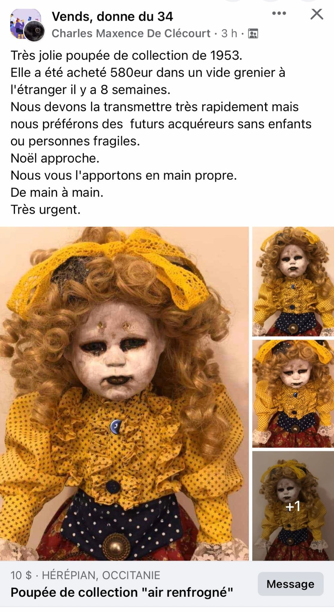 Très urgent ? Ils veulent se débarrasser de la poupée maudite