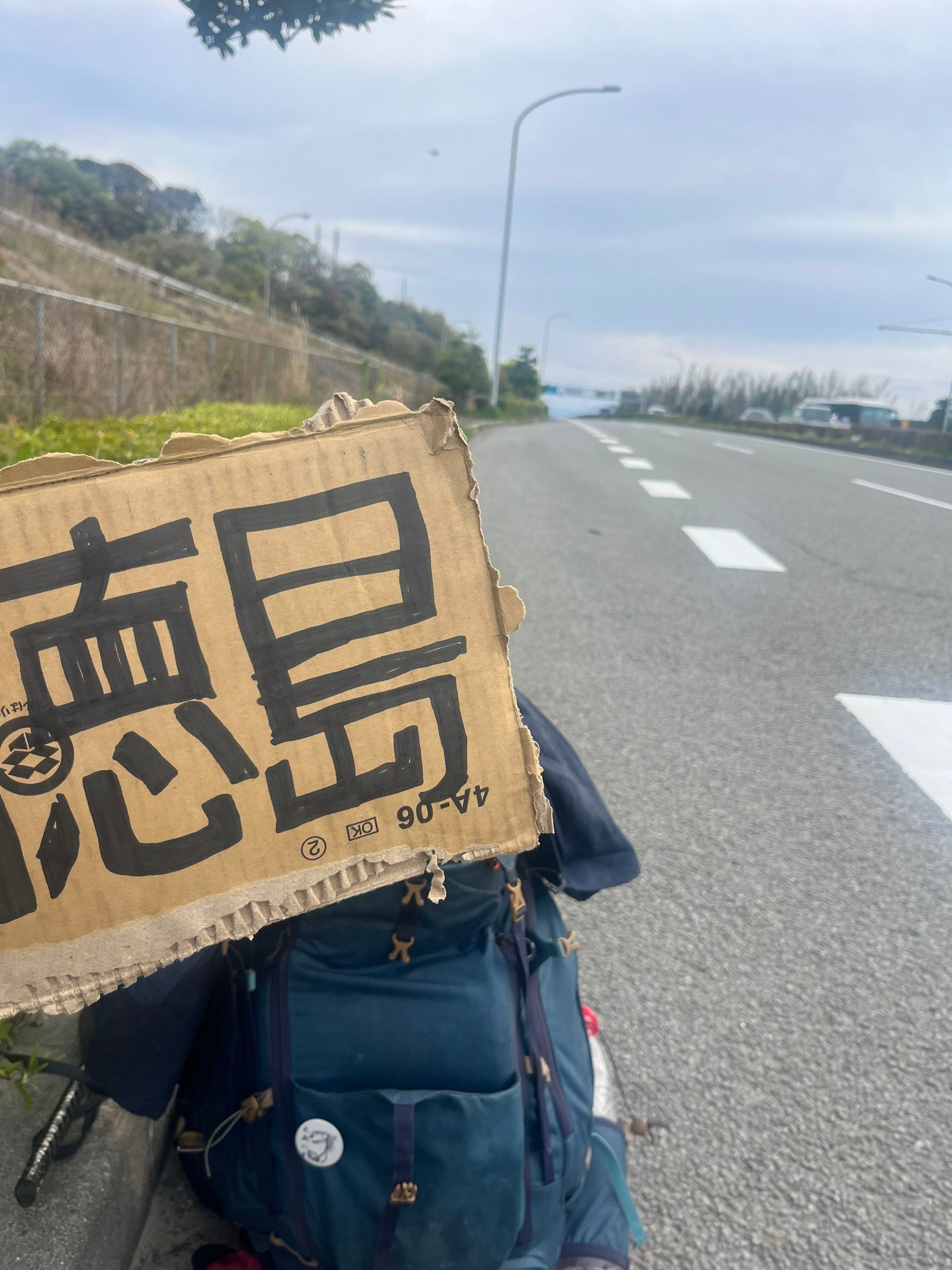 Il me dépose sur l'autoroute, près de la ville de Naruto. Je fais alors du stop après avoir refait mon panneau. https://www.noelshack.com/2024-15-7-1713095191-img-3138.jpeg