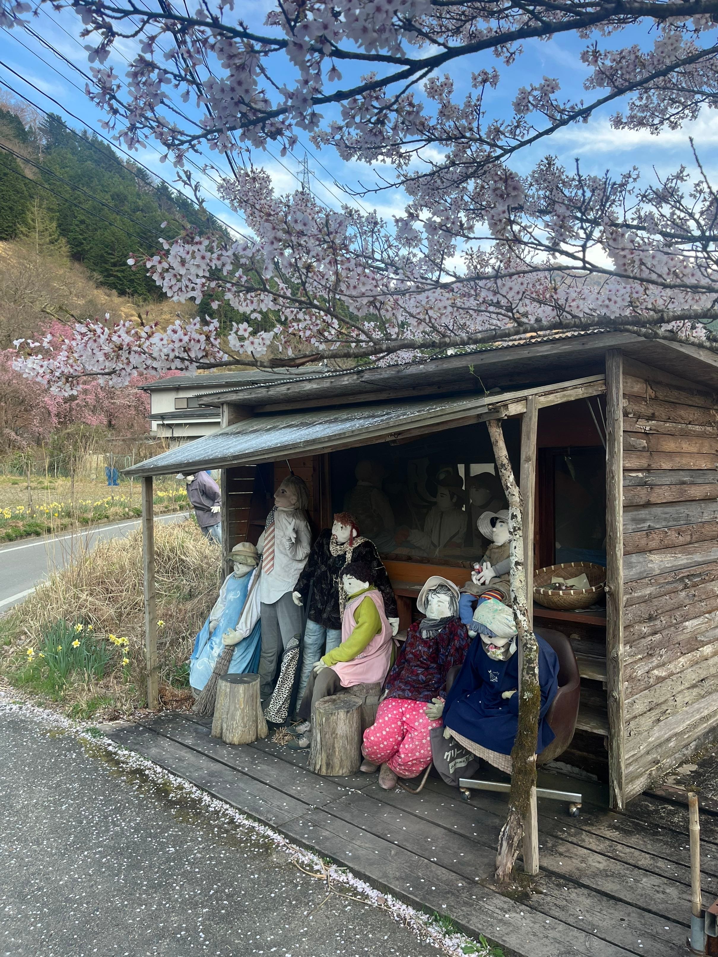 Le lendemain matin, après une douche glacée dans la rivière, je traverse le village de Nagoro. Je saisis l'occasion pour prendre quelques photos en me mettant en scène avec les poupées. https://www.noelshack.com/2024-15-7-1713104070-6b10f1c3-fcc9-424a-bec1-2071cdbfb625.jpg