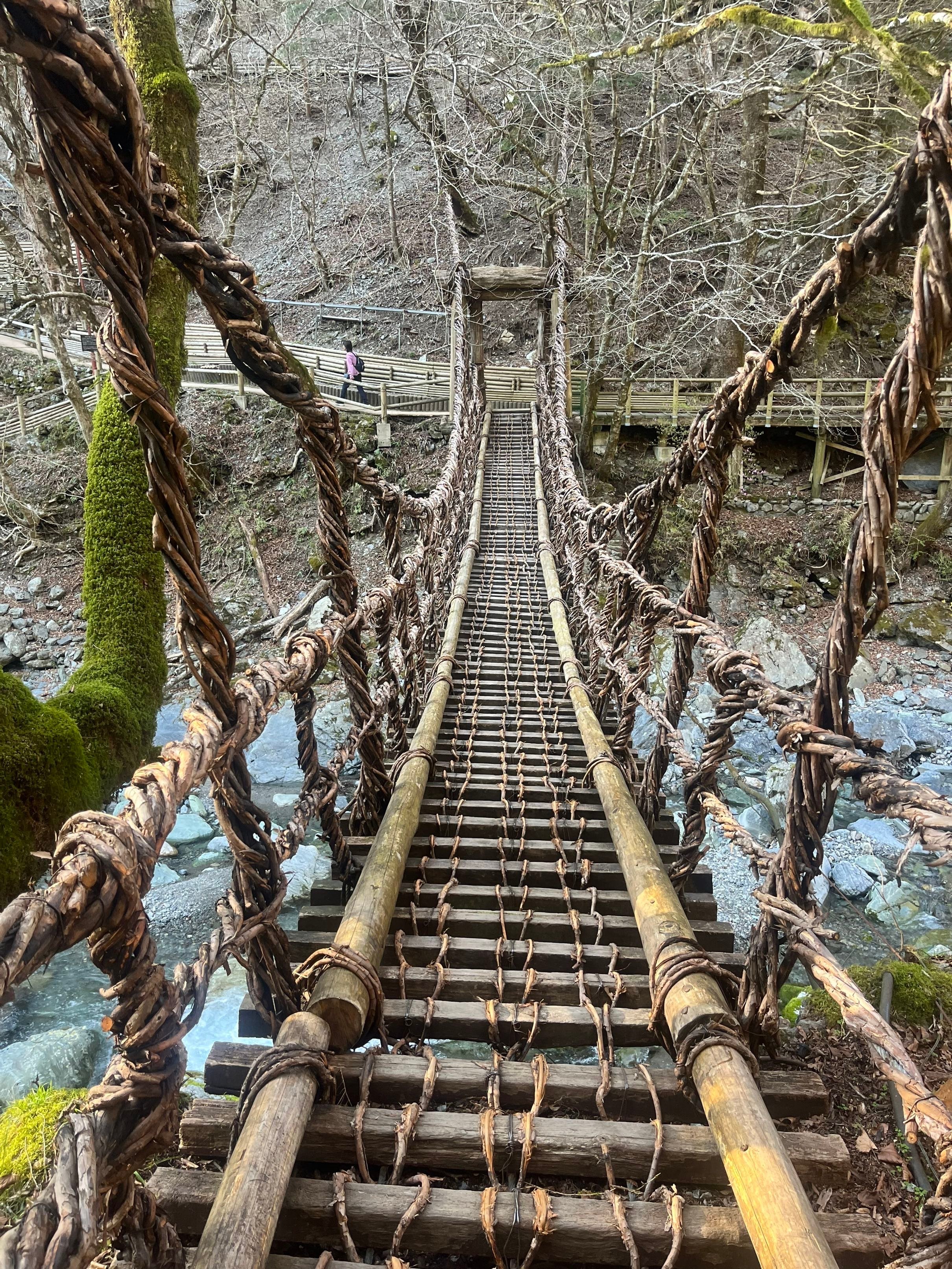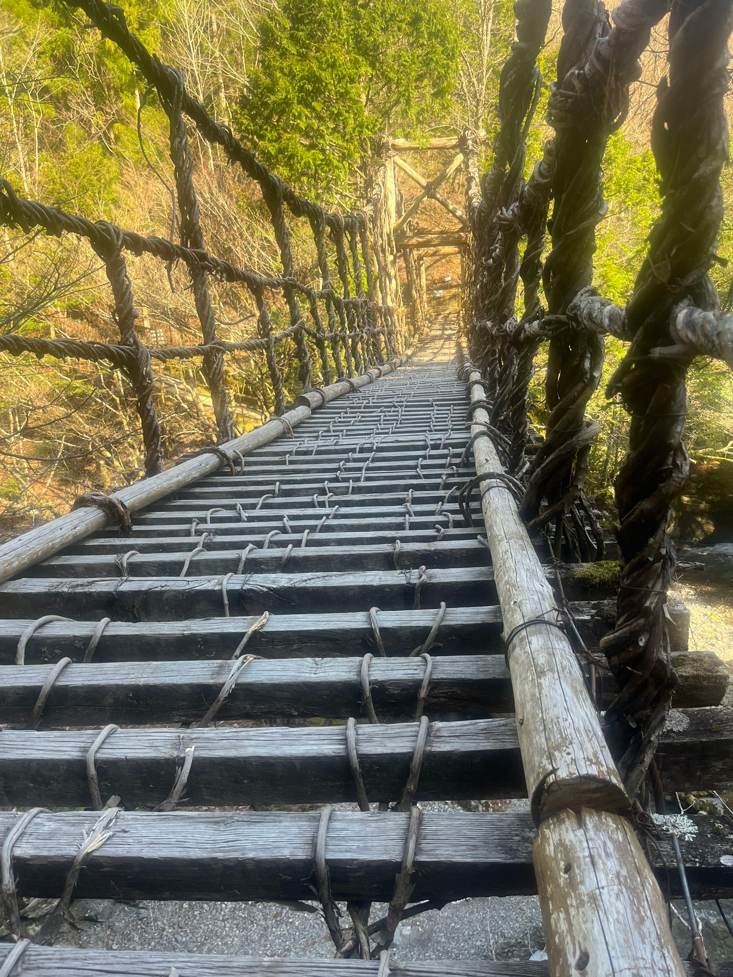 Malgré tout, je décide de marcher sur les dix derniers kilomètres, et je découvre même un pont fait de branches de vigne et de bois, magnifique ! J'en profite pour laver un t-shirt et un caleçon dans les toilettes publiques. Après avoir repris mon sac et accroché mes vêtements mouillés, je continue sur les derniers kilomètres avant d'arriver à Nagoro !