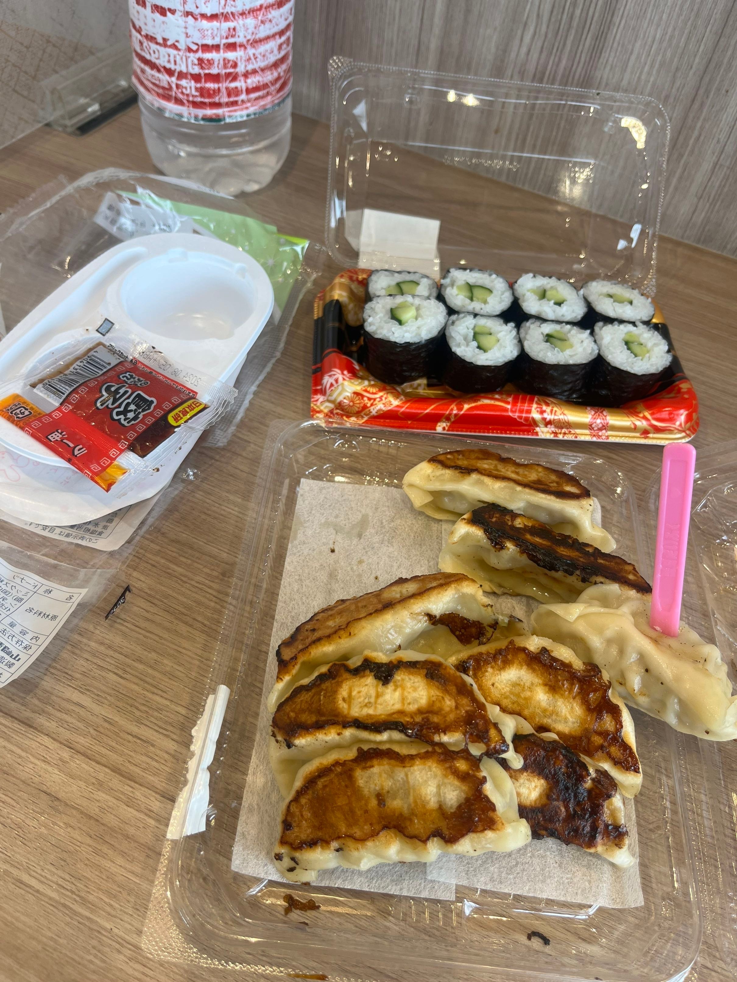Aussi, c’est super pratique de manger là-bas. Tu peux aller dans des supermarchés vers 18 heures et ils ont énormément de plats préparés de sushis, riz ou pâtes pizza qui sont bradés à -50 % ou -30 %. Très souvent, je faisais mon achat pour les deux ou trois heures suivantes en allant au supermarché en fin d’après-midi pour bénéficier des réductions. Après, c’est un peu un piège aussi, plusieurs fois, j’avais beaucoup trop d’affaires, mais j’ai pu vraiment me faire plaisir sur la bouffe. Ils ont des gâteaux aussi pour 100 ¥. J’en ai souvent emporté quatre ou cinq pendant ma marche pour me donner de l’énergie. La bouffe est vraiment variée d’une préfecture à l’autre comme en France, et chaque coin a sa propre spécialité. Les ramens de Yakitori de Fukuoka, Hokonomiyaki d’Hiroshima, Takoyaki d’Osaka, etc.