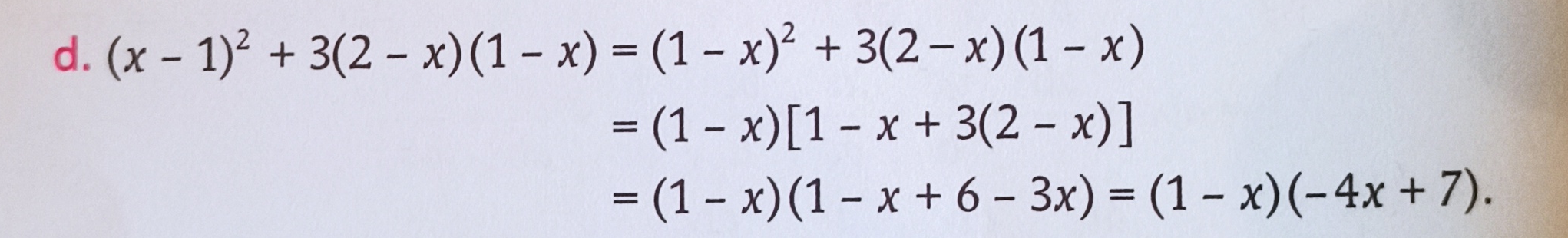 On peut donc permuter les termes (x-1)² et (1-x)² dans l'expression (x-1)² + 3(2-x)(1-x) pour obtenir (1-x)² + 3(2-x)(1-x).