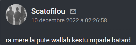 Ce forum est effectivement devenu un cancer depuis qu'il s'est fait envahir par le nord de l'afrique.