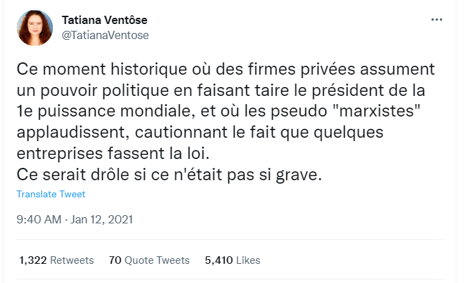 Aya j'avais pas vu Ventose qui défend le pauvre Trump qui s'est fait supprimé son twitter